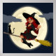 HALLOWEEN HALLOWEEN WITCH FLYING ON BROMSTICK MED CAT OCH FULL MOON