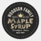 Denna märkning är inte till för hjärtans skull. Fet, mörk och rustik ger en bild av en hett som kokas ned på en gammal trädegel i en byggnad. Guld-emblemet i löv visar klass medan mapelsirap är skriven med ett rustiskt dekorativt typsnitt. Redigera den här etiketten för avslappnad med sirap genom att lägga till ditt företag namn, adress, mängden apelsirap och klass.