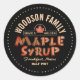 Denna märkning är inte till för hjärtans skull. Fet, mörk och rustik ger en bild av en hett som kokas ned på en gammal trädegel i en byggnad. Orangens emblem i löv visar klass medan sirapen är skriven i ett rustiskt dekorativt typsnitt och typsnitt är i en blek som är gul och som innehåller sirap i olika färgader. Redigera den här etiketten för avslappnad med sirap genom att lägga till ditt företag namn, adress, mängden apelsirap och klass.