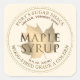 Guld Maple löv på elfenbensetiketten. Ord "MAPLE SYRUP" skrivs i ett teckensnitt med den kelaterade mörken guld.