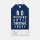 Den här märkrn för julklapp i roligt innehåller gräs träd och orden "Ingen peeking förrän juldagen" i vitt mot en redigerbar bakgrund färg (klicka på anpassa för att ändra). Om du vill ändra bakgrunden till färg eller lägga till text klickar du på knappen "Anpassa". *Observera att Zazzle Watermark som visas i zoomförhandsvisningen INTE visas på den färdiga tryckta produkten. © Rosewood and Citrus