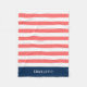 Nautical stil filt med ett vitt rand mönster med en redigerbar bakgrund färg klickar du på anpassningsknappen för åtkomst. Om du vill ändra korallen färg markerar du färg i bakgrunden och ändrar färg. Om du vill ändra blått färg markerar du rektangeln lagrar och ändrar dess fyllning färg. Anpassa den genom att ersätta platshållartexten med en egen text. Om du vill ha fler alternativ som att ändra teckensnittet och det är storlekt/färg eller mellanrummet mellan brev klickar du på knappen "Anpassa". *Observera att Zazzle Watermark som visas i zoomförhandsvisningen INTE visas på den färdiga tryckta produkten. © Rosewood and Citrus