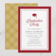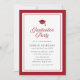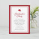 Denna moderna klassiska inbjudan till studentfest har en redigerbar bakgrundsfärg; för att ändra färgen på ramen, studentmössan, orden "Graduation Party" på framsidan och bakgrundsfärgen på baksidan till din valda färg, klicka på knappen Anpassa och ändra både fram- och baksidans bakgrundsfärg. Detta är ett bra sätt att matcha din inbjudan till din skolas färger.