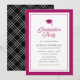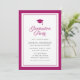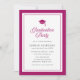 Denna moderna klassiska inbjudan till studentfest har en redigerbar bakgrundsfärg; för att ändra färgen på ramen, studentmössan, orden "Graduation Party" på framsidan och bakgrundsfärgen på baksidan till din valda färg, klicka på knappen Anpassa och ändra helt enkelt både fram- och baksidans bakgrundsfärg. Detta är ett bra sätt att matcha din inbjudan till din skolas färger.