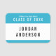 Den här namnetiketten är idealisk för klassåterträffar och har en redigerbar bakgrundsfärg (klicka på Anpassa för att ändra) som du kan ändra för att matcha din skolas färger.