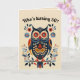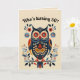 Denna vackra kort har en folkkonstillustration av en uggla och blommor med ett redigerbart meddelande ovanför. På insidan finns ett redigerbart meddelande. Du kan använda detta som födelsedagskort eller som kort för alla tillfällen. Du kan ändra meddelandena eller ta bort dem för att skapa ett tomt kort. Du kan också ändra bakgrundsfärgerna på insidan och baksidan. Detta kort kan användas som ett "tänker på dig"-kort, ursäktkort, tackkort, födelsedagskort osv. Konstkredit: Lynda McDaniel-Smith.