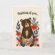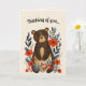 Det här vackra kortet har en folkkonstillustration av en björn och blommor med ett redigerbart meddelande ovanför. På insidan finns ett redigerbart meddelande. Du kan använda det här som födelsedagskort eller som kort för alla tillfällen. Du kan ändra meddelandena eller ta bort dem för att skapa ett tomt kort. Du kan också ändra bakgrundsfärgerna på insidan och baksidan. Det här kortet kan användas som "tänker på dig"-kort, ursäktkort, tackkort, födelsedagskort osv. Konstkredit: Lynda McDaniel-Smith.