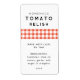 Redigerbar hemmagjord tomatrelish-etikett med rutigt mönster. Skapa dina egna etiketter för konservering till dina favorit-tomat-recept. Perfekt för sylt, hemmagjord present eller som organiserare för kökspanelen.