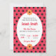 Svarta prickar på röd bakgrund för inbjudan till babydusch för flickor