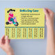 Den här redigerbara mobila nummerpresentatören för dagvård har en liten flicka på en rosa trecykel till lämnat och detaljinformation om verksamheten till högerna. Under är det mobila numret för dina klienter. Texten är redigerbar, så gå vidare och ändra detaljerna samt typsnittet stil, storleka och färg. Bakgrunden till färg kan också ändras. Njut av din nya redigerbara Mobila Daycare Nummer Flyer!
