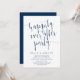 Det här är ett redigerbart modernt marinblått manus, bröllopsinbjudningskort (Happily Ever After-fest). Ett perfekt kort för att inbjuda din älskade familj och gäster till din bröllopsinbjudan, mottagning och festfirande. Lägg till dina festdetaljer i matchande teckensnitt / bokstäver.