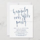 Detta är ett redigerbart modernt marinblått skript, bröllopsinbjudningskort (Happily Ever After Party). Ett perfekt kort för att inbjuda din älskade familj och gäster till tillkännagivande av er bröllopsutflykt, firande av mottagningsparty. Lägg till dina festdetaljer i matchande typsnitt / bokstäver.