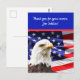 Denna postkort har en örn och den amerikanska flaggan. Ovanför finns ett meddelande som tackar någon för sin tjänst. Texten är redigerbar så ändra gärna meddelandet samt typsnitt, färg och storlek. Detta är ett bra sätt för studenter att uttrycka sin tacksamhet eller för familjer och vänner att visa sin uppskattning för de män och kvinnor som tjänar så modigt.