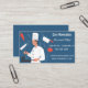 Det här redigerbara affärskortet visar en kock med mat och matlagning av verktyg till lämnat och affärsinformation till högerna. Denna information är redigerbar, så gå vidare och ändra detaljerna samt typsnittet stil, storleka och färg. På baksidan finns fält för ytterligare detaljer som också är redigerbara. Bakgrunden färg på båda sidor kan också ändras. Det här affärskortet kan användas för köksmästare, köksmästare, restauranger, cateringar osv. Njut av ditt nya redigerbara personliga Chef-Affärskort!