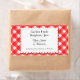 Retro land red and white plaid mönster av checkar och rand på anpassade-klistermärken i reflekterande block och i brev, på en faux doily. Anpassa den om du vill ändra storlek på typsnitt eller ändra storlek, lägga till fält eller ändra färg eller etikettform för bakgrunden, även om du sparor designen för senare tid.