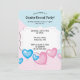 Den här söta redigerbara inbjudan visar detaljerna om evenemanget mot en blå och rosa prickig bakgrund med rosa och blå hjärtformade ballonger längst ner. På baksidan finns ett redigerbart fält för ytterligare information. Texten på båda sidor är redigerbar, så ändra gärna detaljerna samt teckenstorlek och färg. Denna inbjudan kan användas för könsmeddelande, baby shower osv.