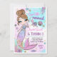 Redigerbar Sjöjungfru, födelsedagsinbjudan, Rosa S Inbjudningar