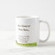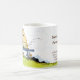 En säljfrämjande åtgärd för personlig mugg med redigerbart namn eller företag i brunt skript brev, och en plats för adress, webbplats eller mobil i brunserif brev och vintage del av en lycklig-bikupa med betande bin på ett landskap i ett landskap.