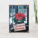 Julkort i anpassad vintage-stil med krukad Poinsettia i ett frostigt fönster och "Christmas Greetings" i typsnittet script! Anpassa det och skicka det som en direktnedladdning till dina vänner och familj. Insidan är fullt redigerbar, så du kan ändra hälsningarna och signera det med ditt familjenamn, året och alla era namn. Insidan har en dekorativ julhjärtformad ram till vänster med redigerbar text och den huvudsakliga redigerbara högtidshälsningen till höger, följt av era namn. Testa det för att se hur det ser ut!
