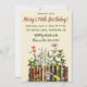 Denna vackra inbjudan har en rad med böcker och blommor med detaljer ovanför. På baksidan finns ett fält för ytterligare information. Texten på båda sidor är redigerbar så du kan ändra informationen samt storlek, färg och stil på typsnittet. Bakgrundsfärgen på baksidan kan också ändras. Denna inbjudan kan användas för bokklubbstillställningar, lärartillställningar, födelsedagar, pensioner, examina osv.