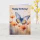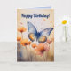 Det här kortet har en illustration av blommor och en fjäril med en redigerbar hälsning ovanför. På insidan finns ett redigerbart meddelande. Du kan ändra meddelandena eller ta bort dem för att skapa ett tomt kort. Du kan också ändra typsnitt, storlek och färg. Bakgrundsfärgen på alla sidor kan också ändras. Detta mångsidiga kort kan användas för födelsedagar, kondoleanser, "tänker på dig", tack-kort osv.