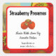 En anpassningsbar-, sylt- eller baketikett med återtryck och blockera brev för ditt företag eller namn och kontaktinformation på en bakgrund av vintage ljusröda jordgubbar.