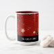 Detta redigerbara tvåtonade kaffe mugg illustrerar julblommor som flödar runt mugg och en familj namn nedanför. Du kan ändra namn och typsnittet stil, storlek och färg. Du kan också ändra färg innanför mugg och remsan bakom namn. Njut av dina nya, redigerbara julblommor, tvåtonkaffe Mugg!
