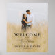 Bröllop välkomstskylt med ett foto av paret. Välj valfri textfärg, etc., i redigeringsverktyget.