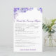 Redigerbar Avsluta Nursery Rhyme Baby Shower Game PRINTED Elegant Lila, Lila blommor, Lila Möhippa, Lila Bröllop