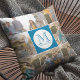 Redigerbart bakgrundsfoto för Färg Round Monogram Kudde