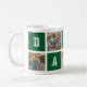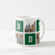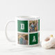 En sportig fotokollage mugg med orden "pappa" i ett varierande kollegialt stil-teckensnitt mot redigerbart kvadratiskt färger som du kan byta från grönt till valfri färg (klicka på anpassa, markera rektangeln lagrar och ändra varje fyllning färg). Perfekt som en gåva till Fars dag på pappa födelsedag. Platshållarfotografi av © Storytree Studios, Stanford, CA *Observera att Zazzle Watermark som visas i zoomförhandsvisningen INTE visas på den färdiga tryckta produkten. © Rosewood and Citrus