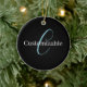 Redigerbart kursivt skript, svart, svart, vitt julgransprydnad keramik