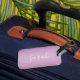 Redigerbart mjukt Mauve Ombre & White Text Script Bagagebricka