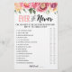 Köp det här personligen och njut av ett högkvalitativt aldrig-kort för ditt evenemang! Det här är en spelmall. Du kan ändra frågorna som du vill! Blommor dekorerar.
