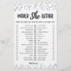 Köp det här redigerbara spelet och njut av hög kvalitet. Vill hon ha ett kort för ditt evenemang? Det här är en spelmall. Du kan ändra frågorna som du vill! Silver konetti.