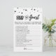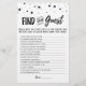 Köp det här redigerbara enfärgade spelet och njut av hög kvalitet Hitta gästkortet för din händelse! Det här är en spelmall. Du kan ändra frågorna som du vill! Silver konetti. Svartvit design.