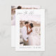 Bröllop spara datum-kort som har ett foto på framsidan och baksidan. Spara datumkorten innehåller en modern handskriven kursiv skripttypografi som är elegant, enkel och modern till använda efter att du har minimalistisk enkel bröllopsdag firande.