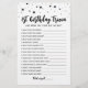 Köp det här redigerbara enfärgade spelet och njut av ett högkvalitativt trivia-kort från första födelsedag för din händelse! Det här är en spelmall. Du kan ändra frågorna som du vill! Svarta och vita stjärnor.