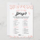 Köp det här redigerbara spelet och njut av vad som finns i ditt plånbokskort för evenemanget! Det här är en spelmall. Du kan ändra frågorna som du vill! Sök efter objekten i den här listan på mobila. Personen med flest poäng vinner! Möhippans aktiviteter! Konserverdesign i ro Guld.