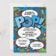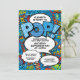 En rolig, cool och trendig retro serietidning pop art-inspirerad baby shower eller sprinkle inbjudan som sätter wham, zap, pow i varje superhjälte mamma eller pars firande event. Designad av Thisisnotme©