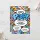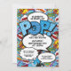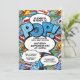 En rolig, cool och trendig retro serietidning pop art-inspirerad baby shower eller sprinkle inbjudan som sätter wham, zap, pow i varje superhjälte mamma eller pars firande event. Designad av Thisisnotme©