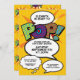 En roligt, coola och trendig tecknad i gender-neutralt-bok inspirerade till babydusch, sprinkning eller par-duschinbjudan som placerar horan, zap, pow i vilken superhjälte mamma för att vara eller par firande. Den omvända har en matchande bok-polka-punkt mönster som du kan ersätta med en egen bild eller ett eget foto. Designad av Thisisnotme©