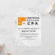 Fira en anmärkningsvärd milstolpe med denna moderna och professionella CPA-examensinbjudan. Designad med en ren vit layout, subtila geometriska texturer och djärva orangea accenter inspirerade av redovisningssymboler, speglar denna inbjudan perfekt prestationen att bli en certifierad offentlig redovisningsekonom.