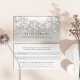 Hänskjutningskort för chic innehåller ditt erbjudande om hänskjutning i klassisk, svart skrift på en silvrig grått-bakgrund, med en spricka av vit ljus överst. Lägg till dina hänvisningsvillkor och kontaktinformation på baksidan, med utrymme för dina kunders namn.