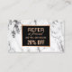 Gör ett varaktigt intryck på dina kunder med det här vitmärkesreferenskortet. Det här referenskortet har en fantastisk vit marmorbakgrund med elegant guld och skapar ett modernt och sofistikerat utseende. Anpassa mallen med din salons varumärke och kontaktinformation med Zazzles design verktyg. Ge ut de här referenskorten till dina befintliga kunder och sporra dem att hänvisa sina vänner och familj till din salong med speciell rabatt eller erbjudande. Perfekt för vilken skönhetsalong som helst tittar att öka kundbasen och belöna lojala kunder.