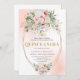 Refined Boho Blush Roses Greenery Gold Quinceañera Inbjudningar