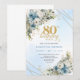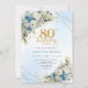 Refined Dusty Blue Floral Gold 80th Birthday Invit Inbjudningar