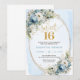 Refined Dusty Blue Greenery Sweet Sixteen Invites Inbjudningar