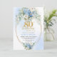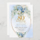 Refined Dusty Blue Peonies Gold Frame 80 Birthday Inbjudningar