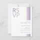 Retro 70's geometric lines have been given a facelift with a color-blocked background and contemporary color scheme, to create the pieces of this eye-catching wedding design set. The color palette ranges from soft lavender through shades of deep violet and steel blue to give this set a very trendy vibe. The wedding RSVP card shown here features all of the above plus a template to easily add your own names and menu choices. Search ID983 to see all the coordinating pieces in this set.